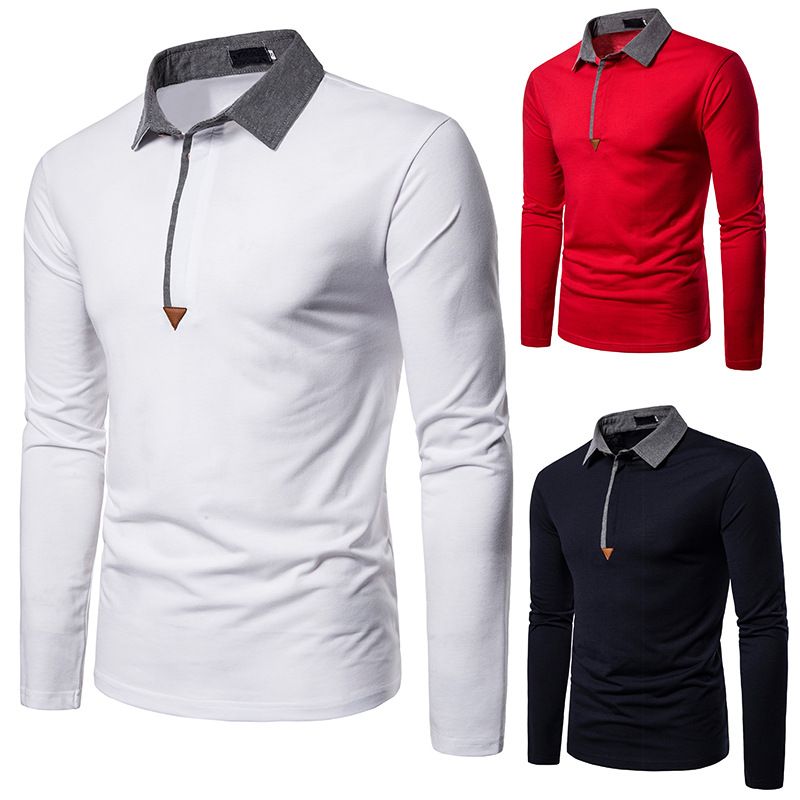 Men's Solid Color Lapel Long Sleeve POLO Shirt White 2XL