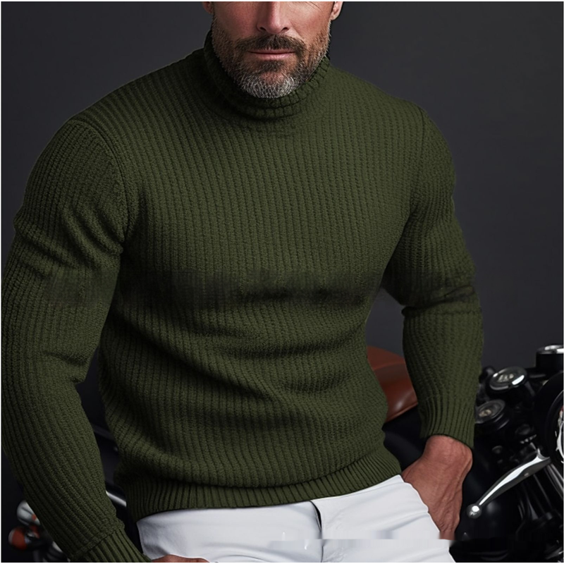 Men's Solid Color Long Sleeve Turtleneck Sweater Army Green L