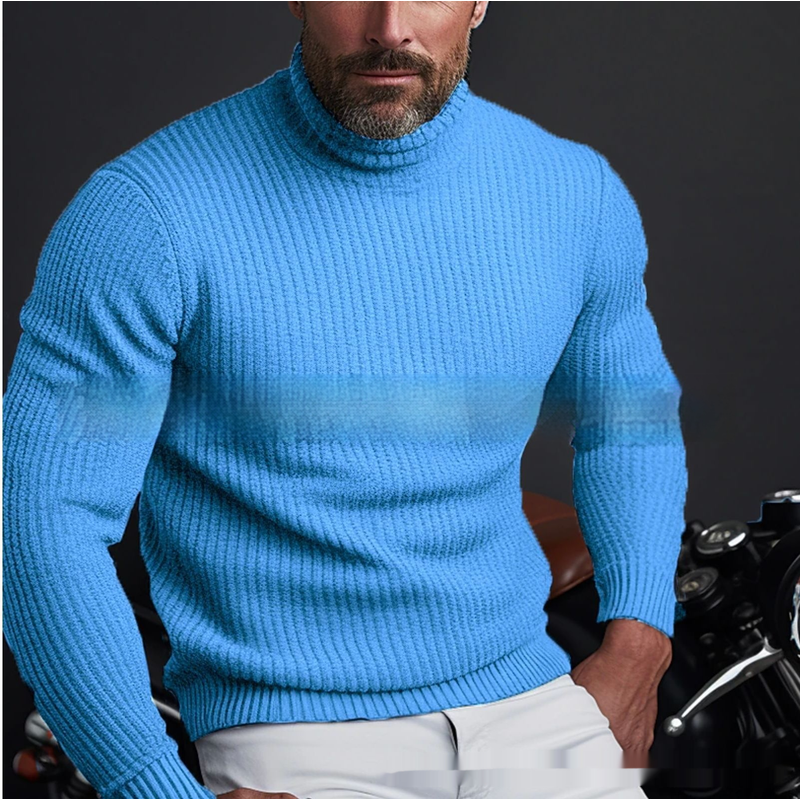 Men's Solid Color Long Sleeve Turtleneck Sweater Sky Blue L