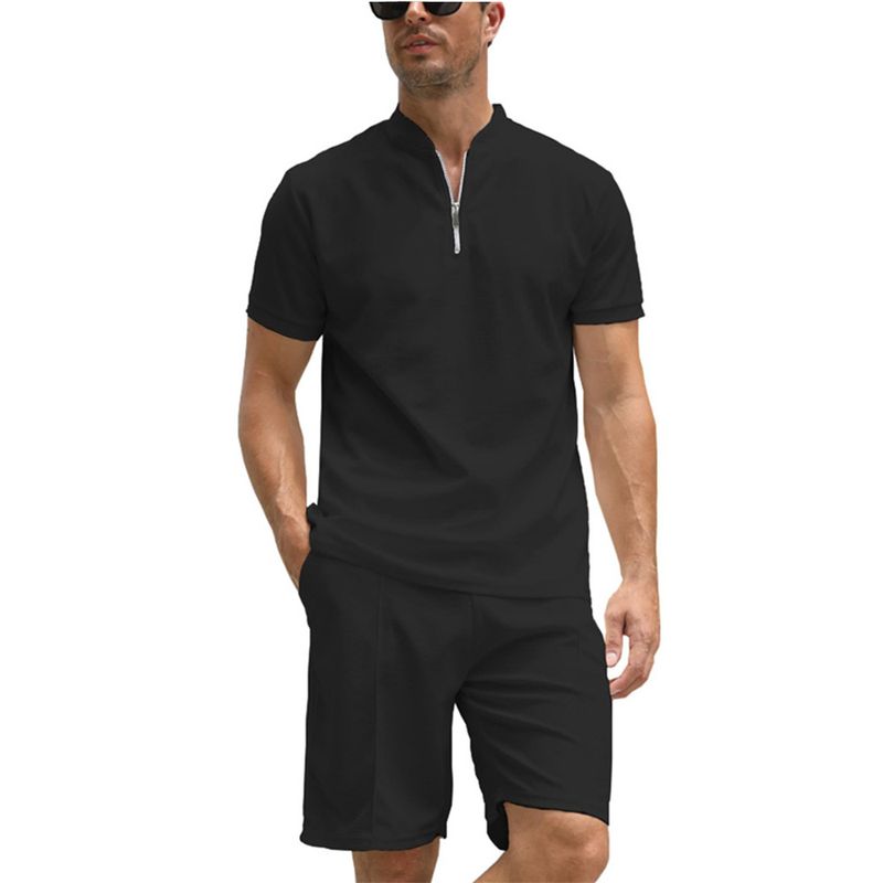 Men's Solid Color Polo Shirt Suit Short Sleeve Two-piece Set MB13MA01ZQ250517Y002 XXL
