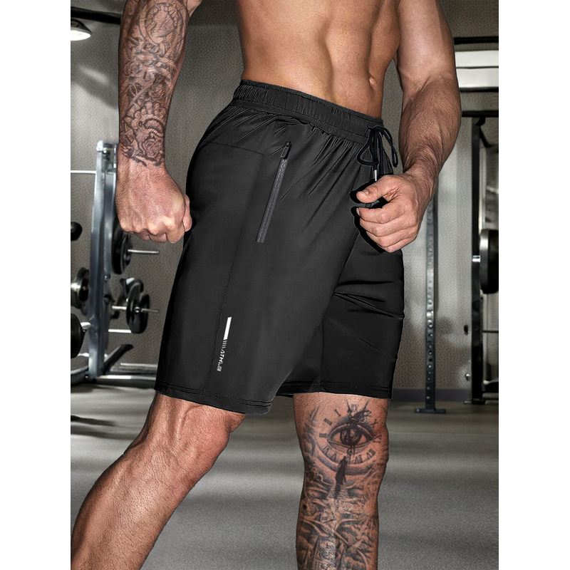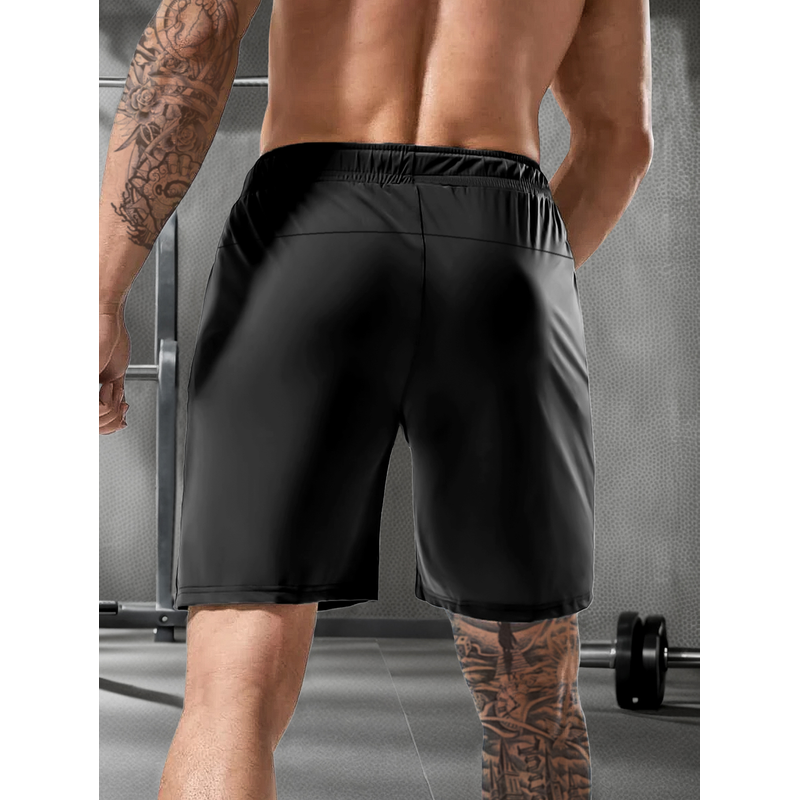 Men's solid color shorts, with zipper pockets, casual elastic drawstring shorts with a loose waist and high elasticity, suitable