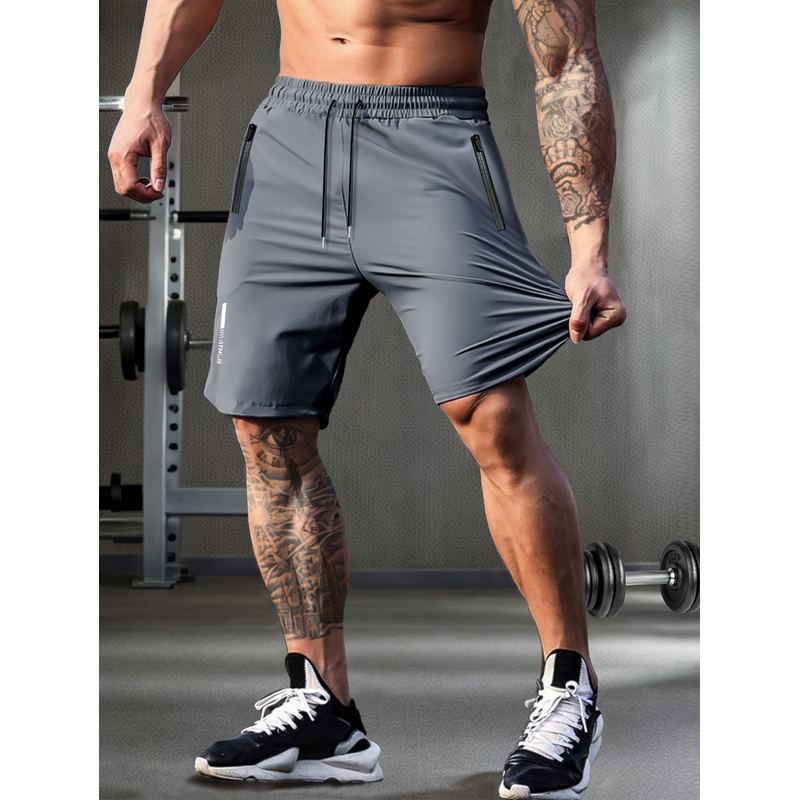 Men's solid color shorts, with zipper pockets, casual elastic drawstring shorts with a loose waist and high elasticity, suitable