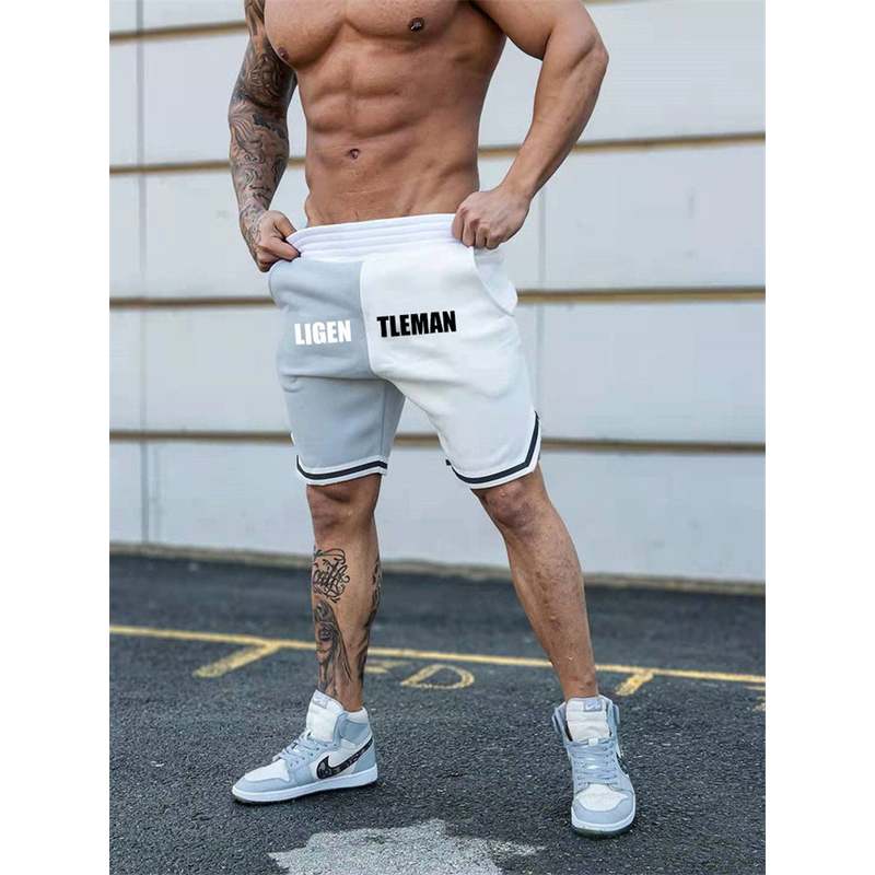Men's Sports Fitness Color Blocking Shorts Breathable Grey L