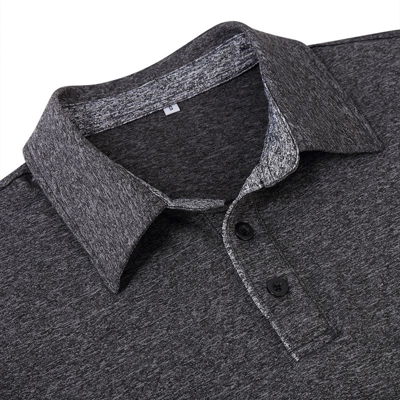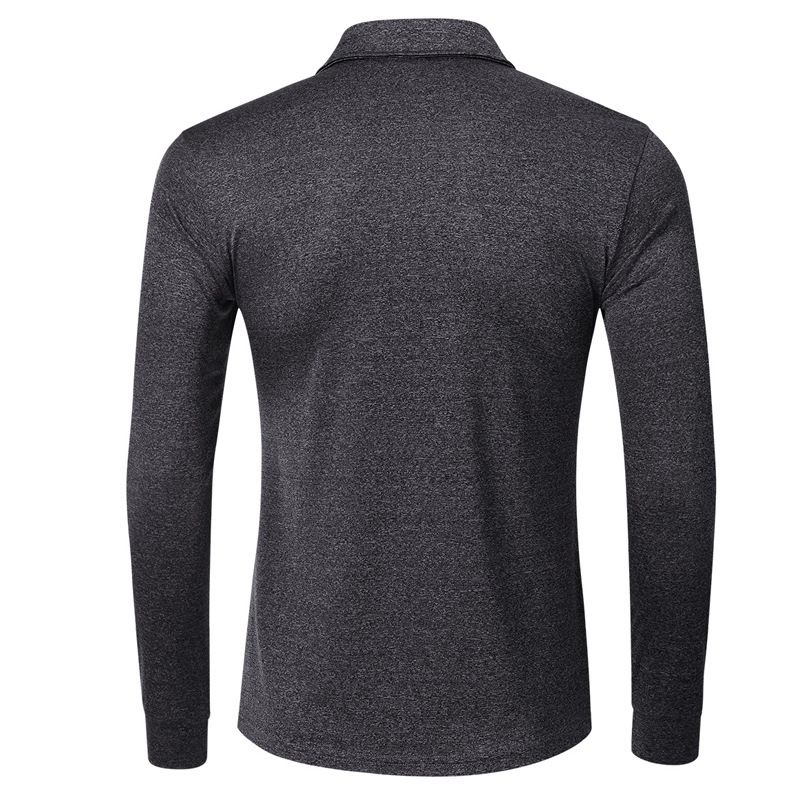 Men's Sports Golf Lapel Long Sleeve Polo Shirt T-shirt Dark Gray S
