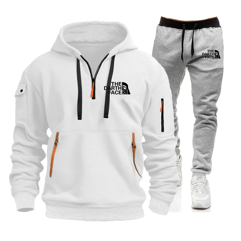 Men's sportswear for autumn and winter, featuring zipped pockets. Includes casual sportswear, pullover shirts, jogging suits