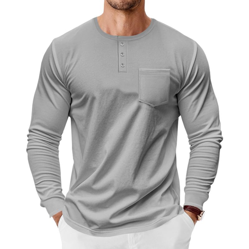 Men's Spring And Autumn Henley Shirt Long Sleeve Light Gray XXL