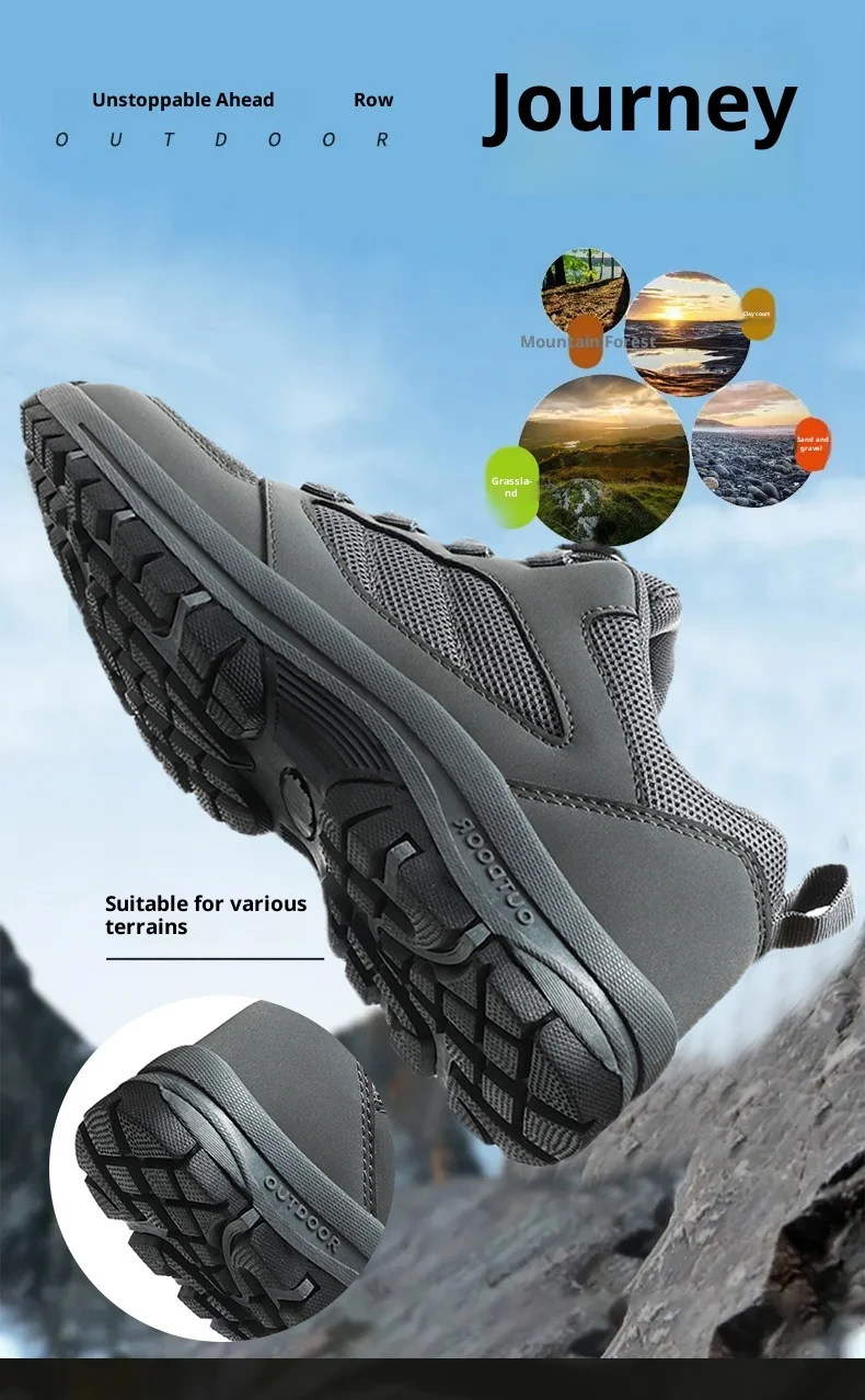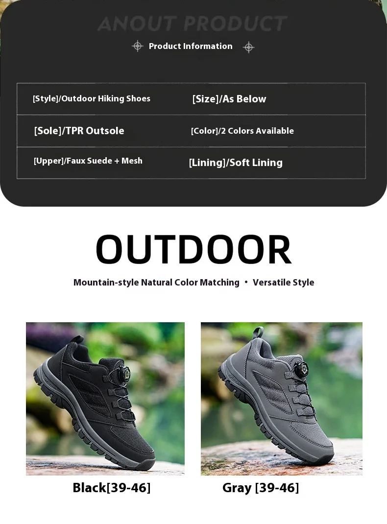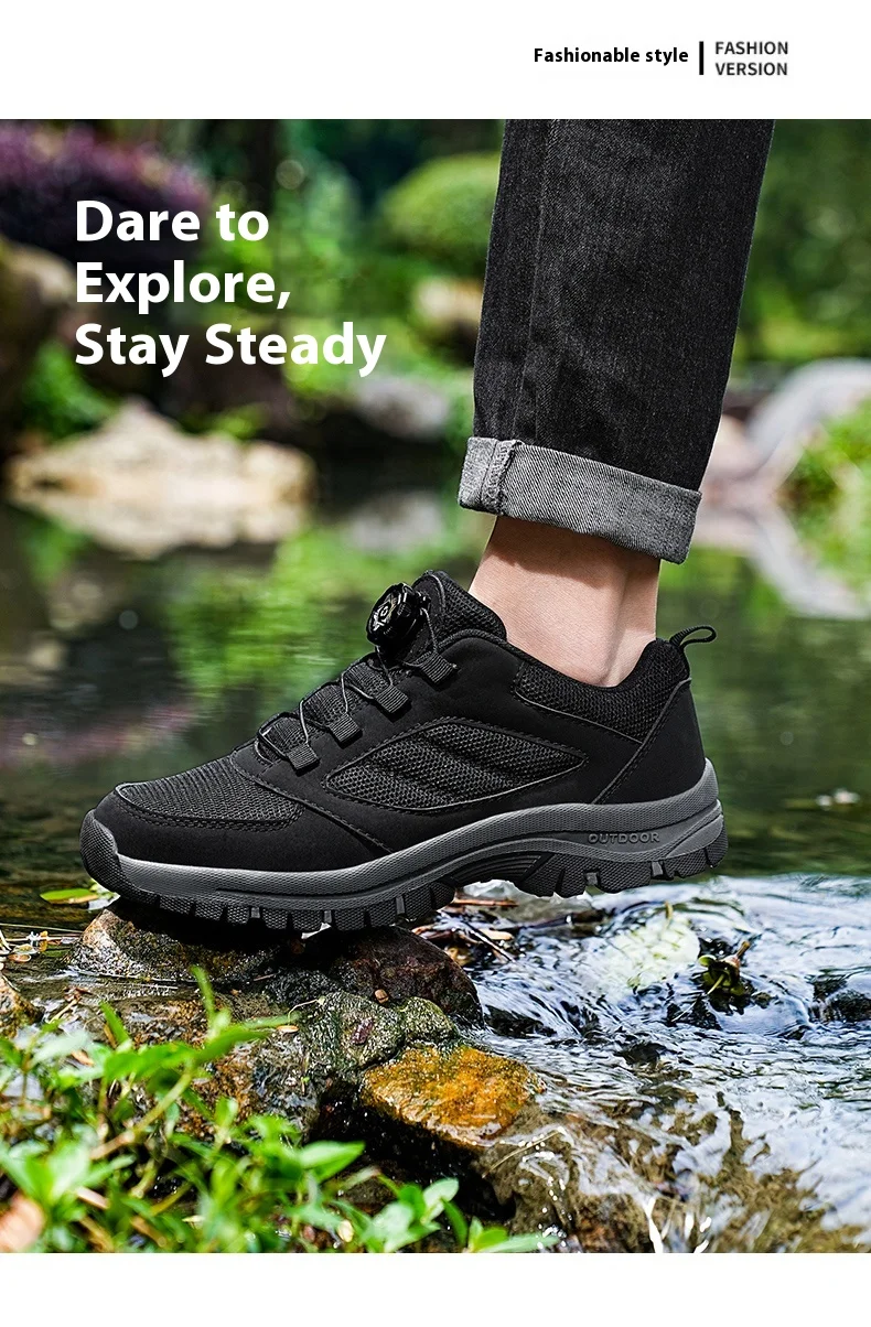 Make every step as steady as a rock, and every trip easy and comfortable. These rotating buckle hiking shoes satisfy all your imagination of outdoor sports in spring and autumn.