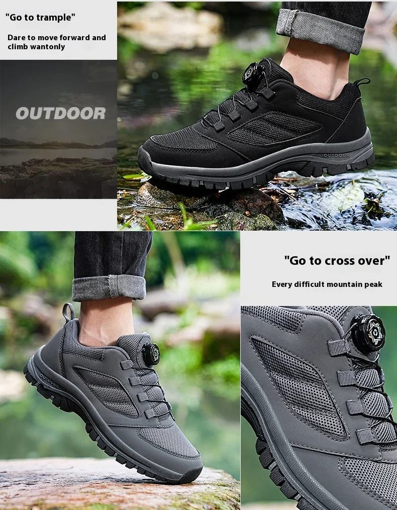 Men'S Spring And Autumn Outdoor Sports Shoes With Rotating Buckle Convenient Comfortable Anti Slip Hiking Shoes Large Size 39-46