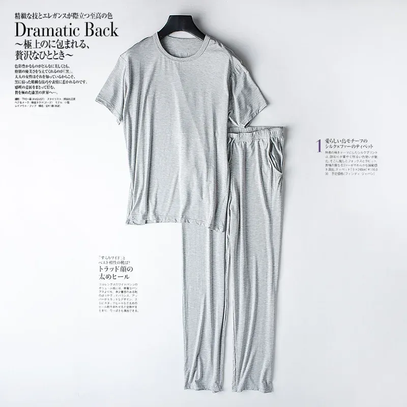 Men's spring and summer new modal pajamas two-piece short-sleeved trousers thin large size loose sports home wear suit sleepwear