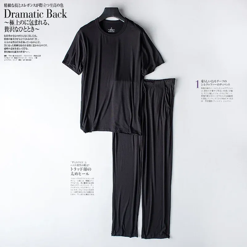 Men's spring and summer new modal pajamas two-piece short-sleeved trousers thin large size loose sports home wear suit sleepwear