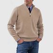 Men's Stand Collar Zipper Sweater Winter Fashion Solid Color Long Sleeve Knitted Top Clothing Dark Purple M