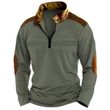 Men's Stitching Polo Shirt Long-sleeve Zipper Sports Green XL