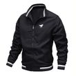 Men's Stylish Zip-up Jacket with Horse Logo & Striped Ribbed Collar/Cuffs, Lightweight Casual Outerwear for Men, Fashion Jacket