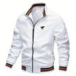 Men's Stylish Zip-up Jacket with Horse Logo & Striped Ribbed Collar/Cuffs, Lightweight Casual Outerwear for Men, Fashion Jacket