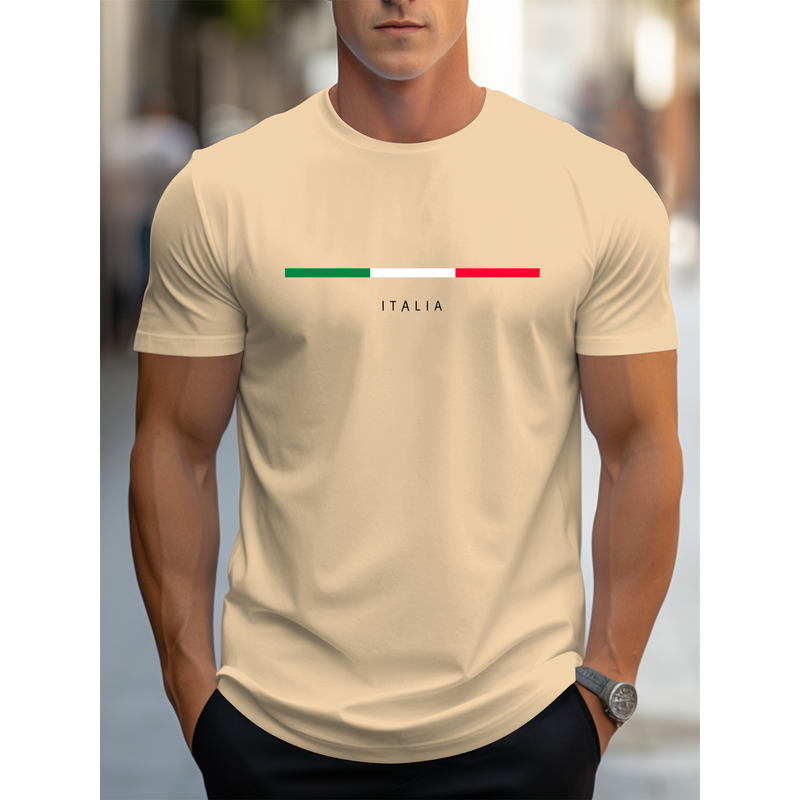 Men's summer 100 cotton fashionable casual loose plus size ITALIA pattern printed sports round neck short sleeved T-shirt top