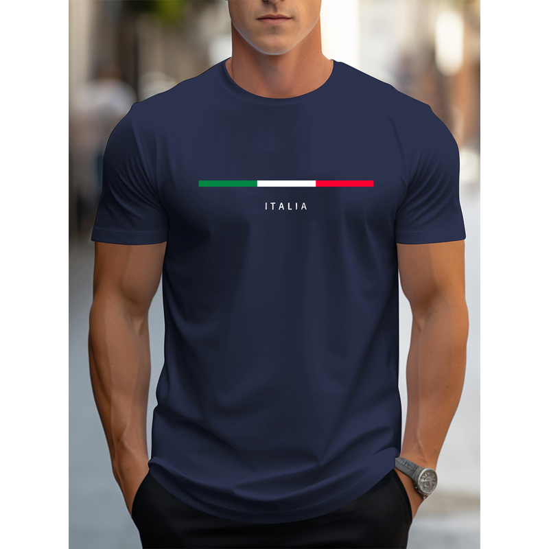 Men's summer 100 cotton fashionable casual loose plus size ITALIA pattern printed sports round neck short sleeved T-shirt top