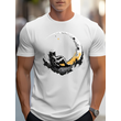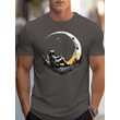 Men's summer 100 cotton fashionable casual loose plus size landing moon pattern printed sports round neck short sleeved T-shirt