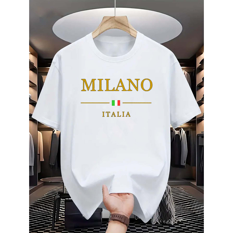 Men's summer 100 cotton fashionable casual loose plus size MILANO ITALIA pattern printed sports round neck short sleeved T-shirt