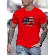 Men's Summer Casual Loose Size 100% Cotton Trendy American Flag Pattern Print Round Neck Short Sleeve T-shirt Top