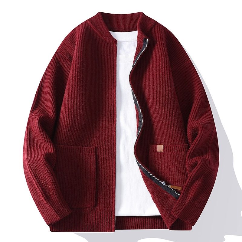 Men's Sweater Cardigan Striped Jacket Coat Red 2XL