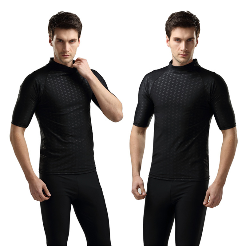 Men's Swimsuit Suit, Short-sleeved Top, Split Quick-drying Snorkeling Equipment Black 2XL