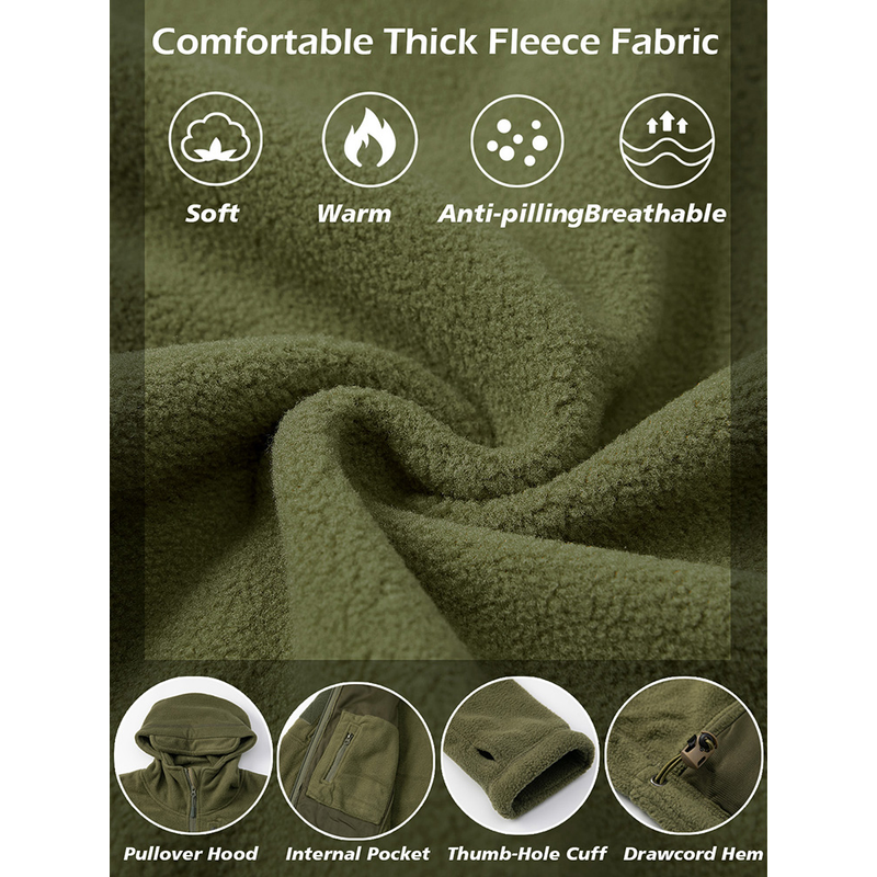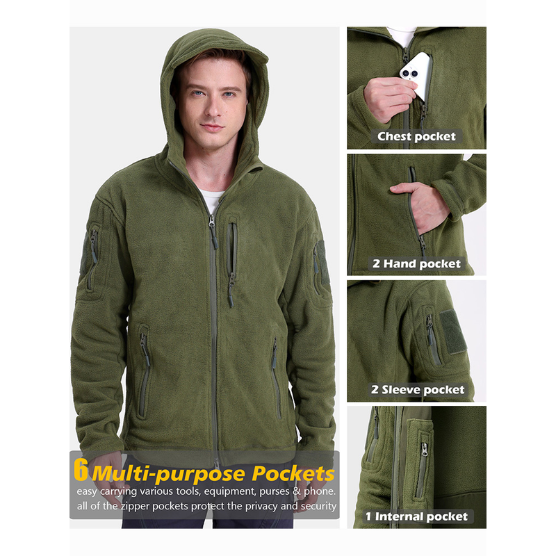 Men's Tactical Fleece Jacket Winter Warm Full Zip Military Hoodies Multi-Pockets Hiking Hunting Outdoor Coats