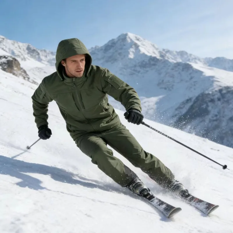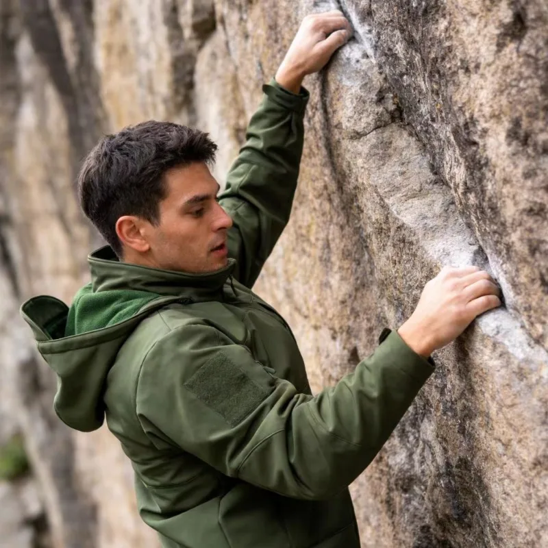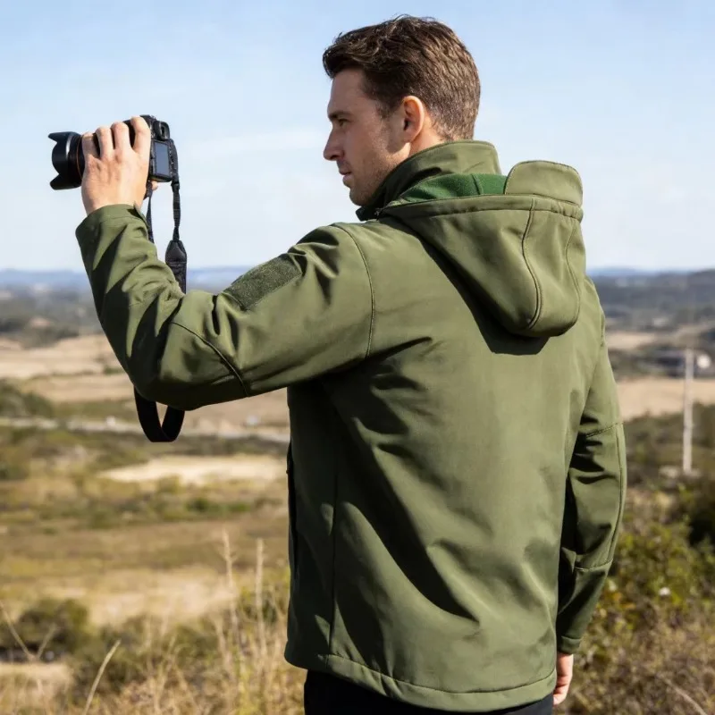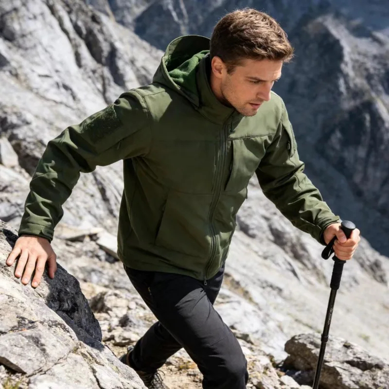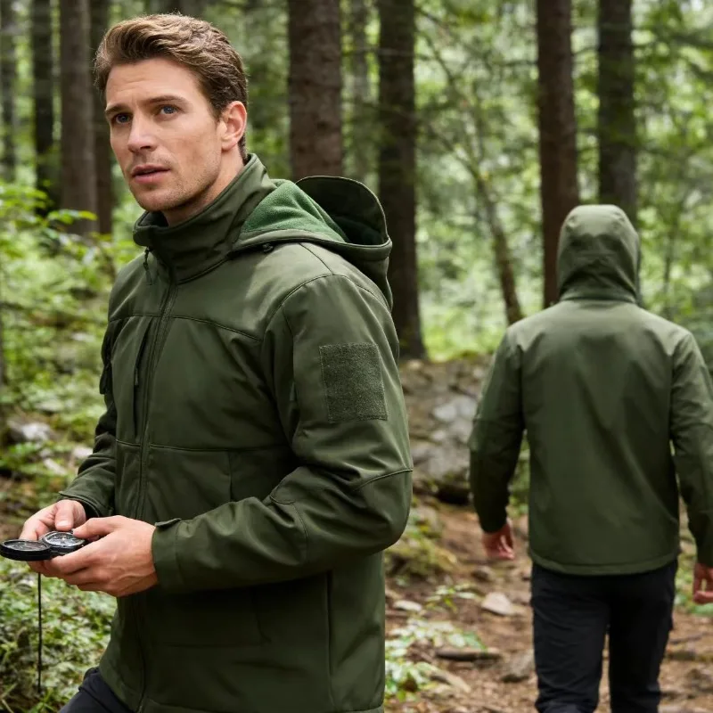 Men's Tactical Softshell Jacket Waterproof Windproof Hooded Military Fleece Lined Coat for Outdoor Skiing Hiking Hunting EU Size