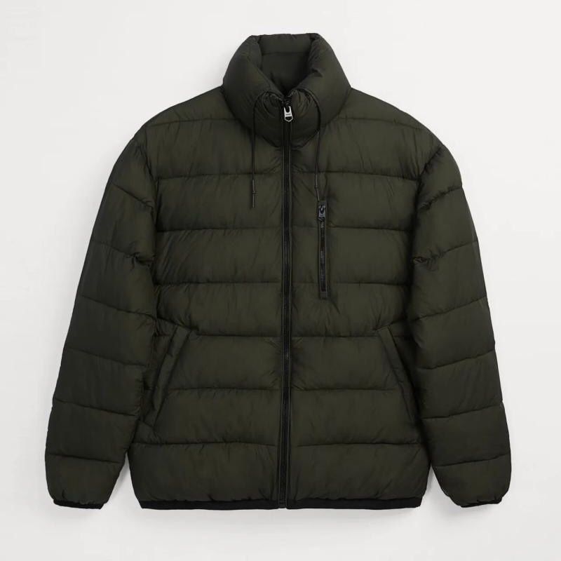 Men's Technology Fabric Stand Collar Waterproof Quilted Cotton-padded Jacket Army Green S
