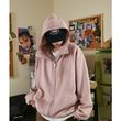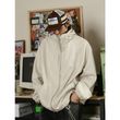 Men's Thick Loose Pu Shuai Embroidered Zipper Hooded Jacket Beige 2XL