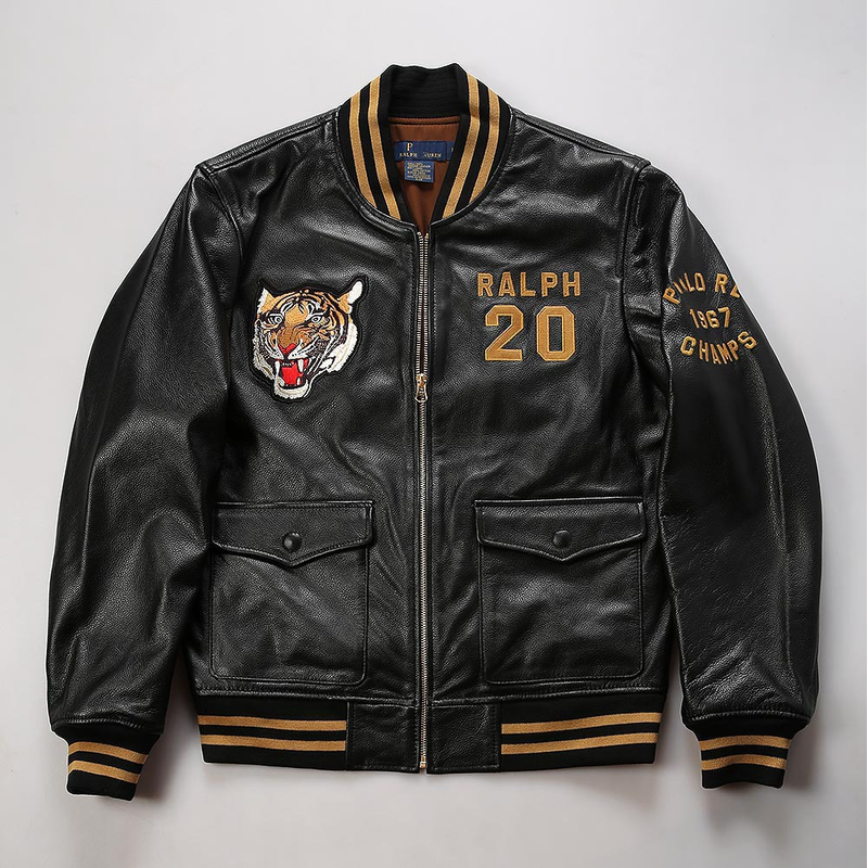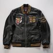 Men's top quality stand collar real leather jacket baseball tiger embroidery Fashion leisure first layer cowhide leather coat