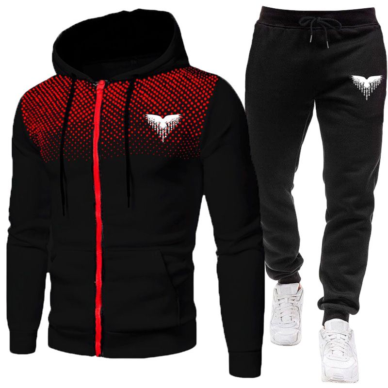 Men's Tracksuit Zipper Coat and Black Sweatpants Outdoor Casual Sporty Hoodie Jogging Suit Male Autumn Training Set Sweatshirts