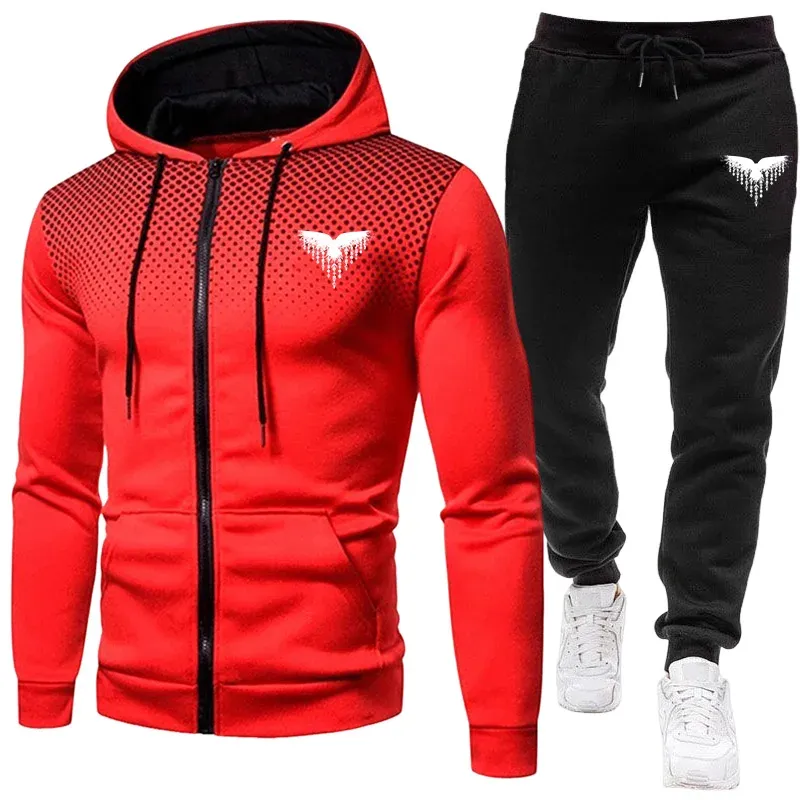 Men's Tracksuit Zipper Coat and Black Sweatpants Outdoor Casual Sporty Hoodie Jogging Suit Male Autumn Training Set Sweatshirts