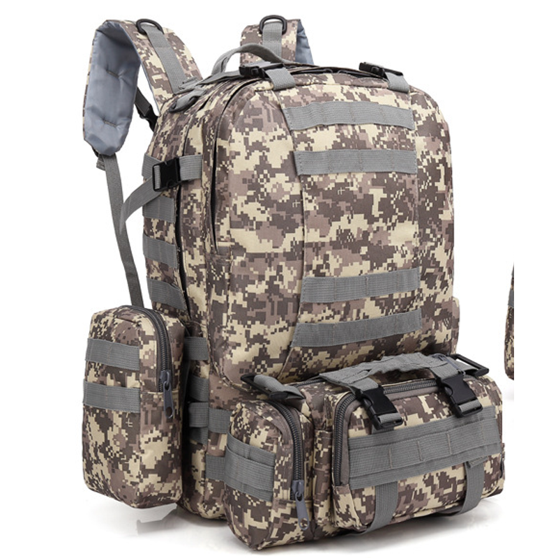 Men's Travel Backpack Oxford Cloth Outdoors Backpack Army Camouflage Tactics Double Shoulder Bag Mountaineering Large Combination Backpack ACU color
