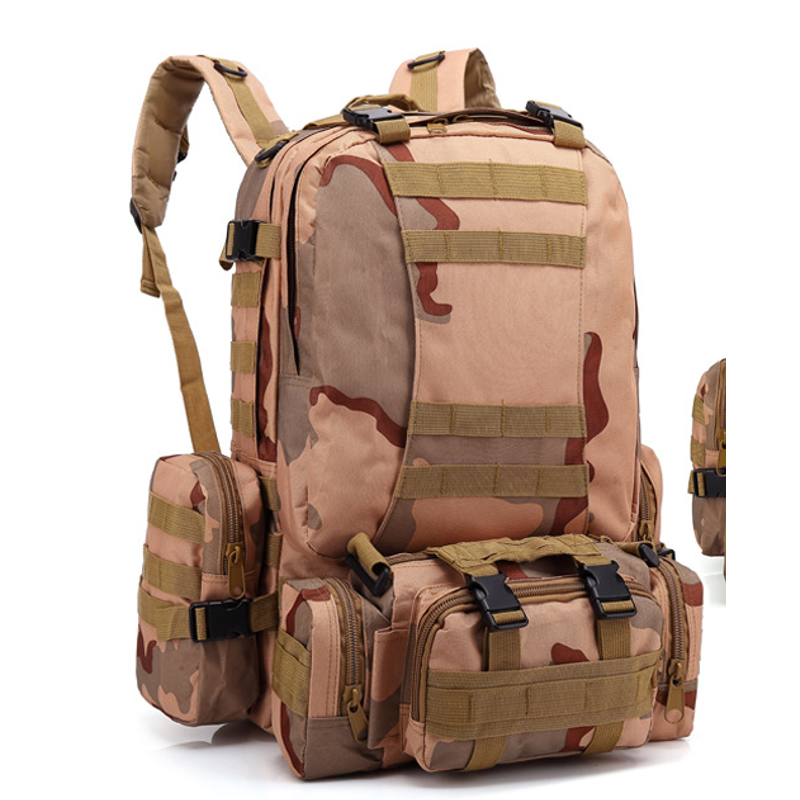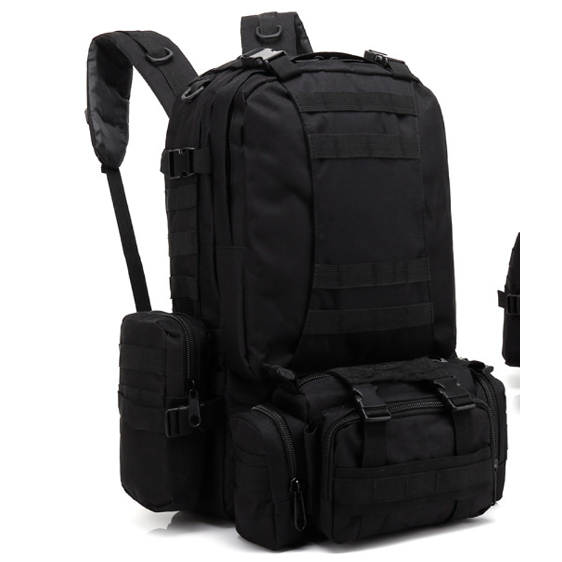 Men's Travel Backpack Oxford Cloth Outdoors Backpack Army Camouflage Tactics Double Shoulder Bag Mountaineering Large Combination Backpack Black