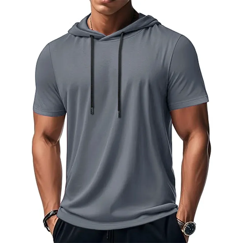 Men's Trendy And Fashionable Thin Style Breathable Loose Outdoor Running Casual Top Sports Short Sleeved T-shirt Hooded Style