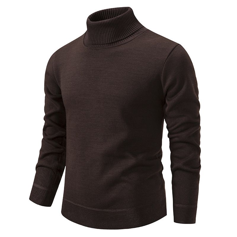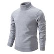 Men's Turtleneck Pullover Sweater Fashion Solid Color Fleece Lined Knitted Long-sleeved Top Clothing Gray S