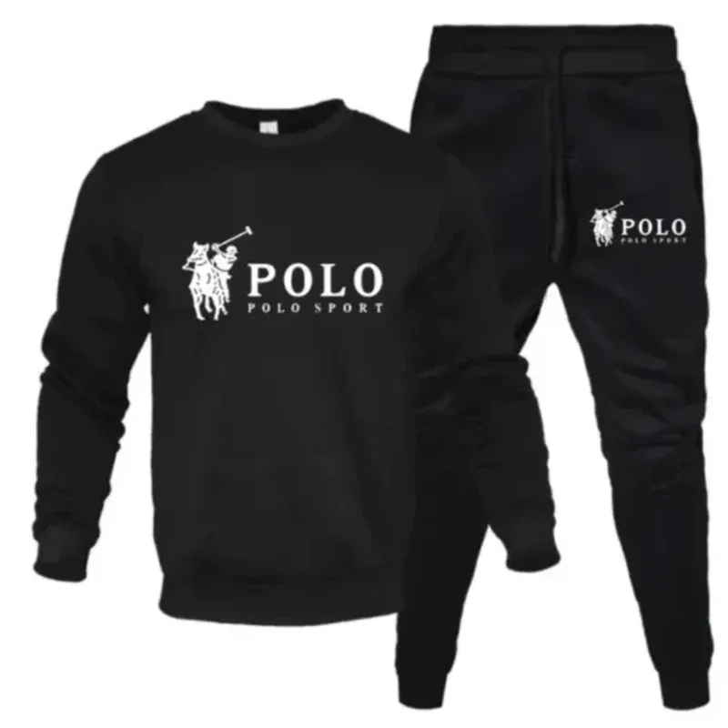 Men's two-piece round-neck sweatshirt + jogging pants, autumn and winter fashion, outdoor fitness and casual sportswear set