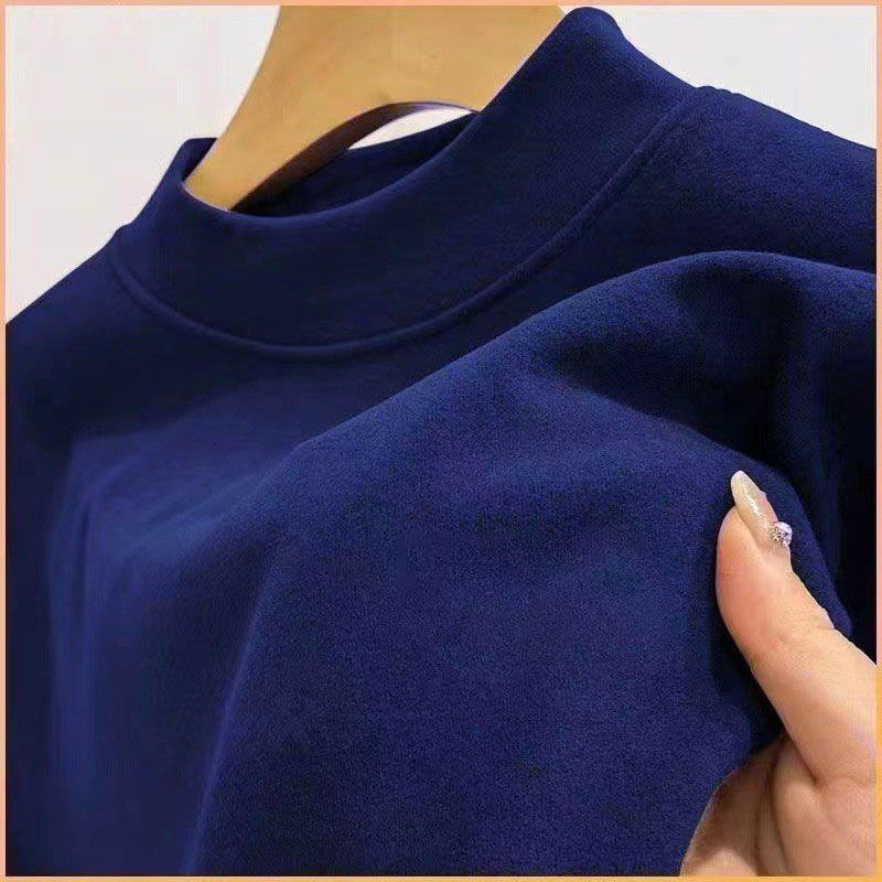 Men's Undershirt Half Turtleneck Solid Color Long-sleeved T-shirt Autumn Clothes Navy Blue 5XL