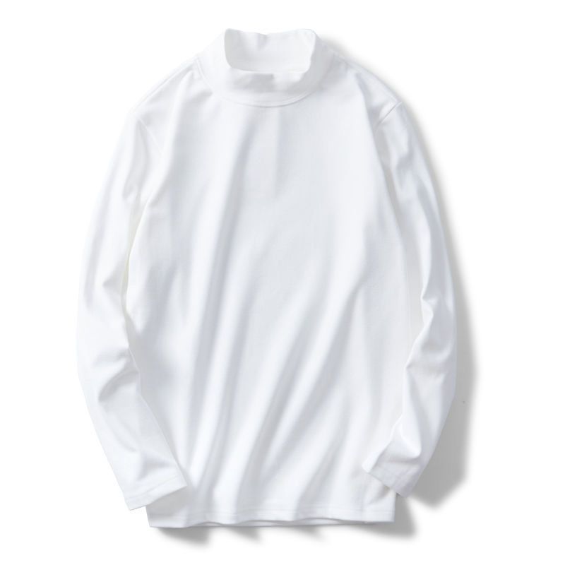 Men's Undershirt Half Turtleneck Solid Color Long-sleeved T-shirt Autumn Clothes White 3XL