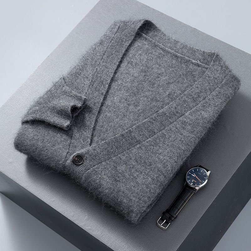 Men's V-neck Button Cardigan Knitted Long Sleeve Light Army Green S