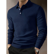 Men's Versatile Solid Color Fashion Lapel Long Sleeve Polo Shirt Navy Blue XL