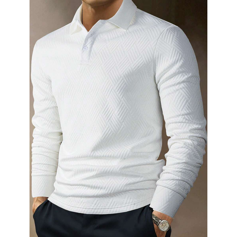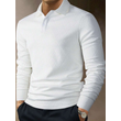 Men's Versatile Solid Color Fashion Lapel Long Sleeve Polo Shirt White S