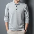Men's Waffle Long Sleeved POLO Shirt with Letter Printed Lapel Casual Top