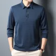 Men's Waffle Long Sleeved POLO Shirt with Letter Printed Lapel Casual Top