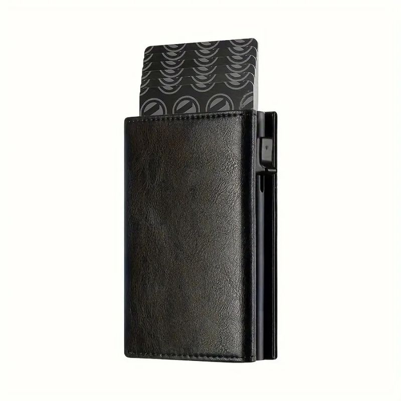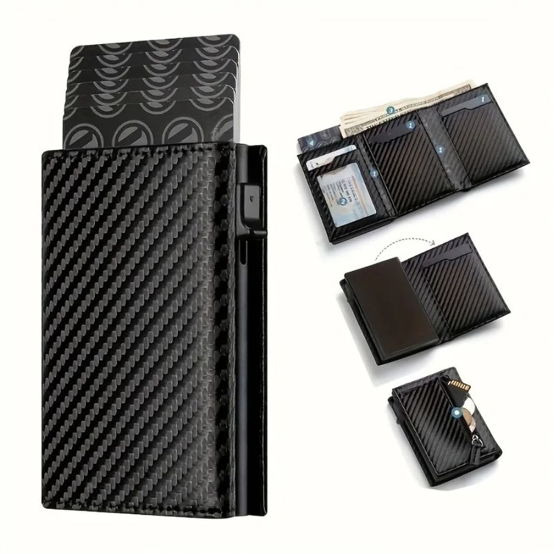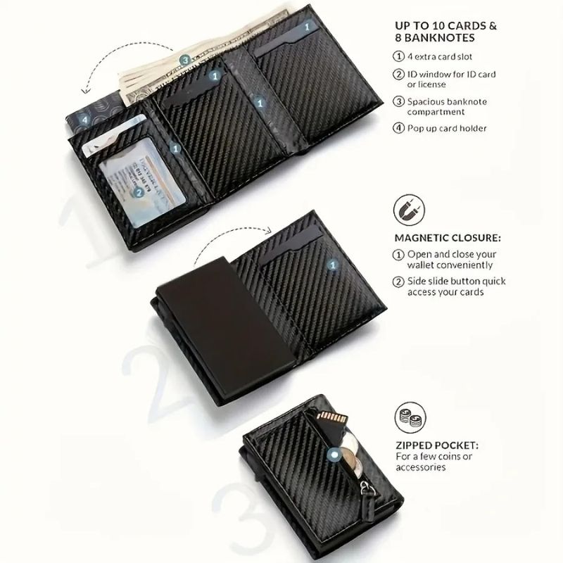 Men's Wallet with Zipper Coin Purse Automatic Pop-up Metal Credit Card Holder Minimalist RFID Blocking Business Card Wallet Idea