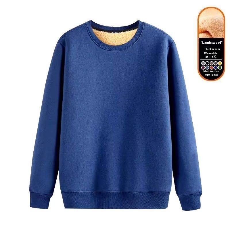 Men's Warm Lambskin Round Neck Hoodie Apricot Solid Color 2XL