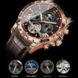 Color: P1410 rose gold black face red circle belt style, P1410 rose gold black face blue circle belt style, P1410 black shell black face belt style, P1410 silver case black face belt style