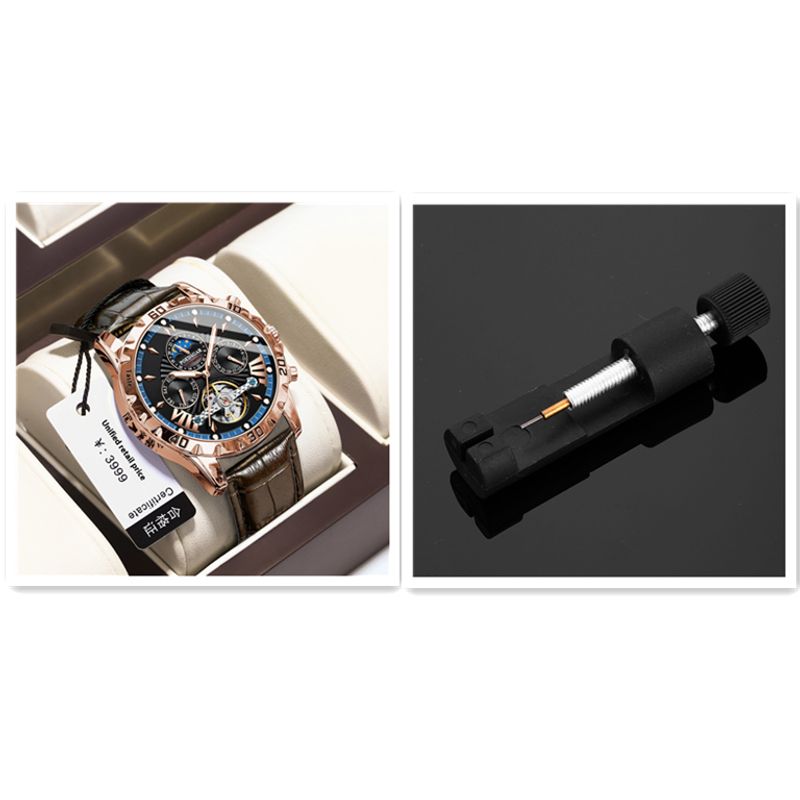 Color: P1410 rose gold black face red circle belt style, P1410 rose gold black face blue circle belt style, P1410 black shell black face belt style, P1410 silver case black face belt style