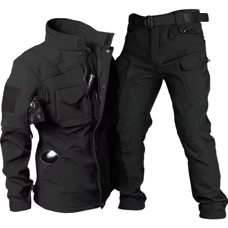 Men's waterproof shark skin tactical set, thick soft shell combat jacket and windproof warm work pants two-piece set