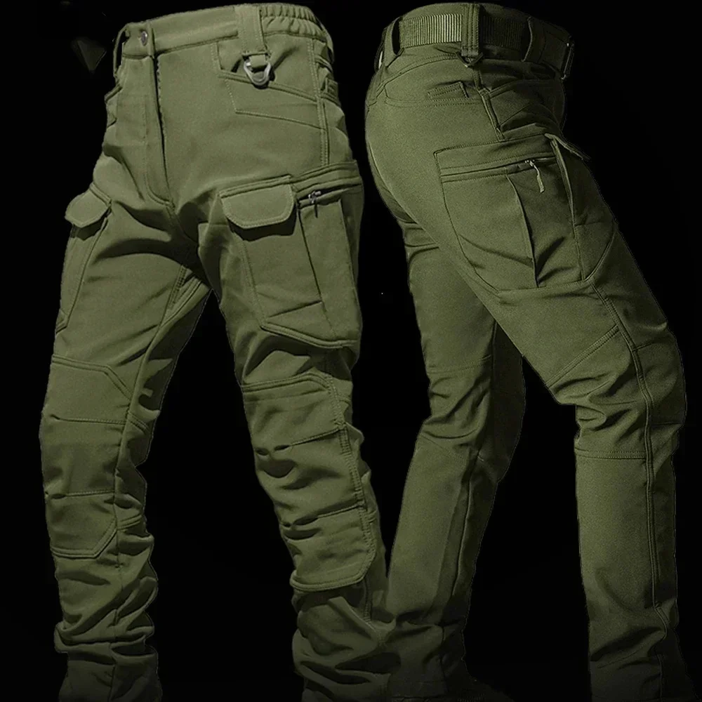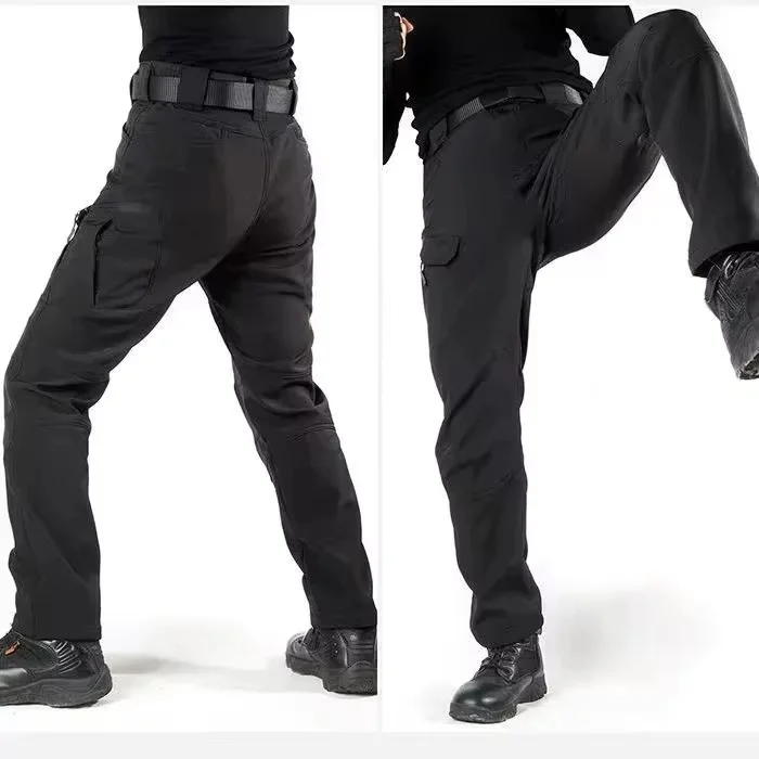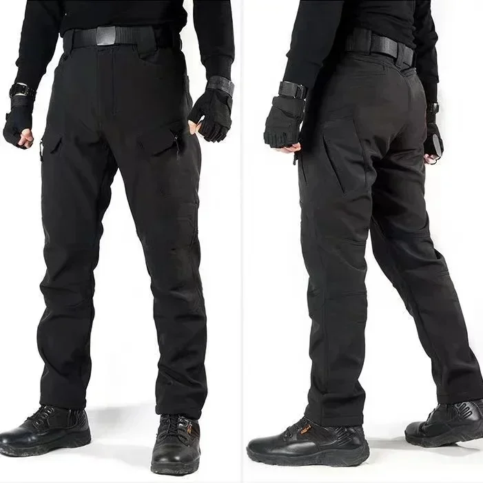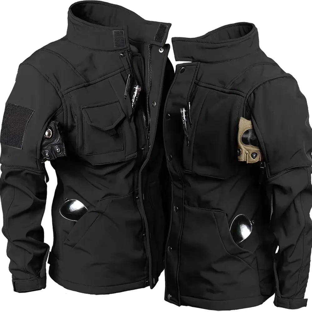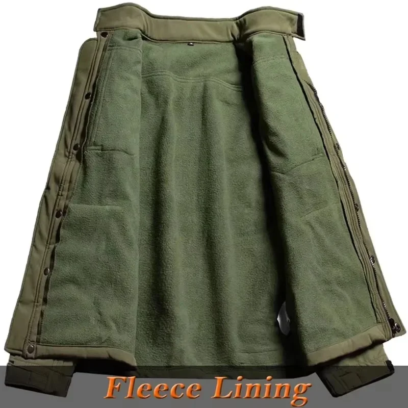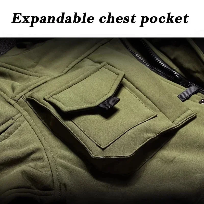 Men's waterproof shark skin tactical set, thick soft shell combat jacket and windproof warm work pants two-piece set